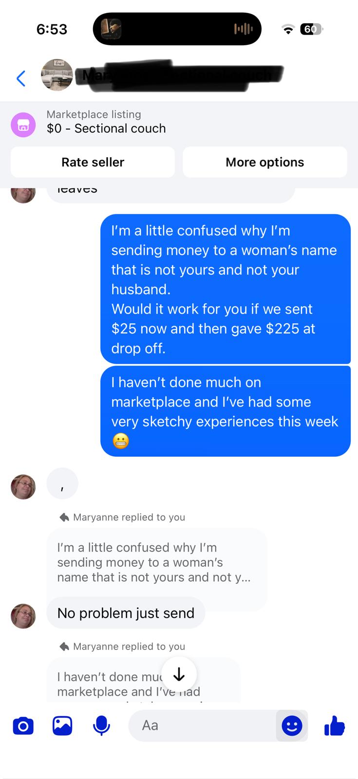 Then comes the payment details⦠and the name she sends isnāt hers. Itās not even a manās name.