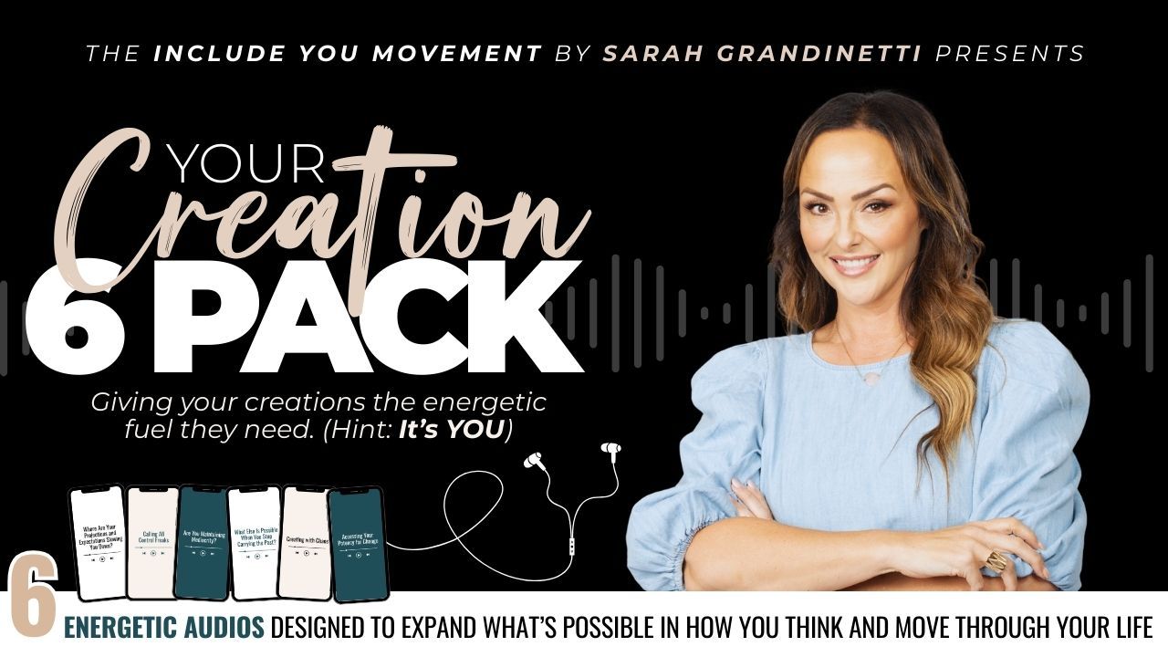 Your Creation 6-Pack is a curated collection of rapid-fire clearing audios designed to expand what’s possible in how you think, choose, and create.